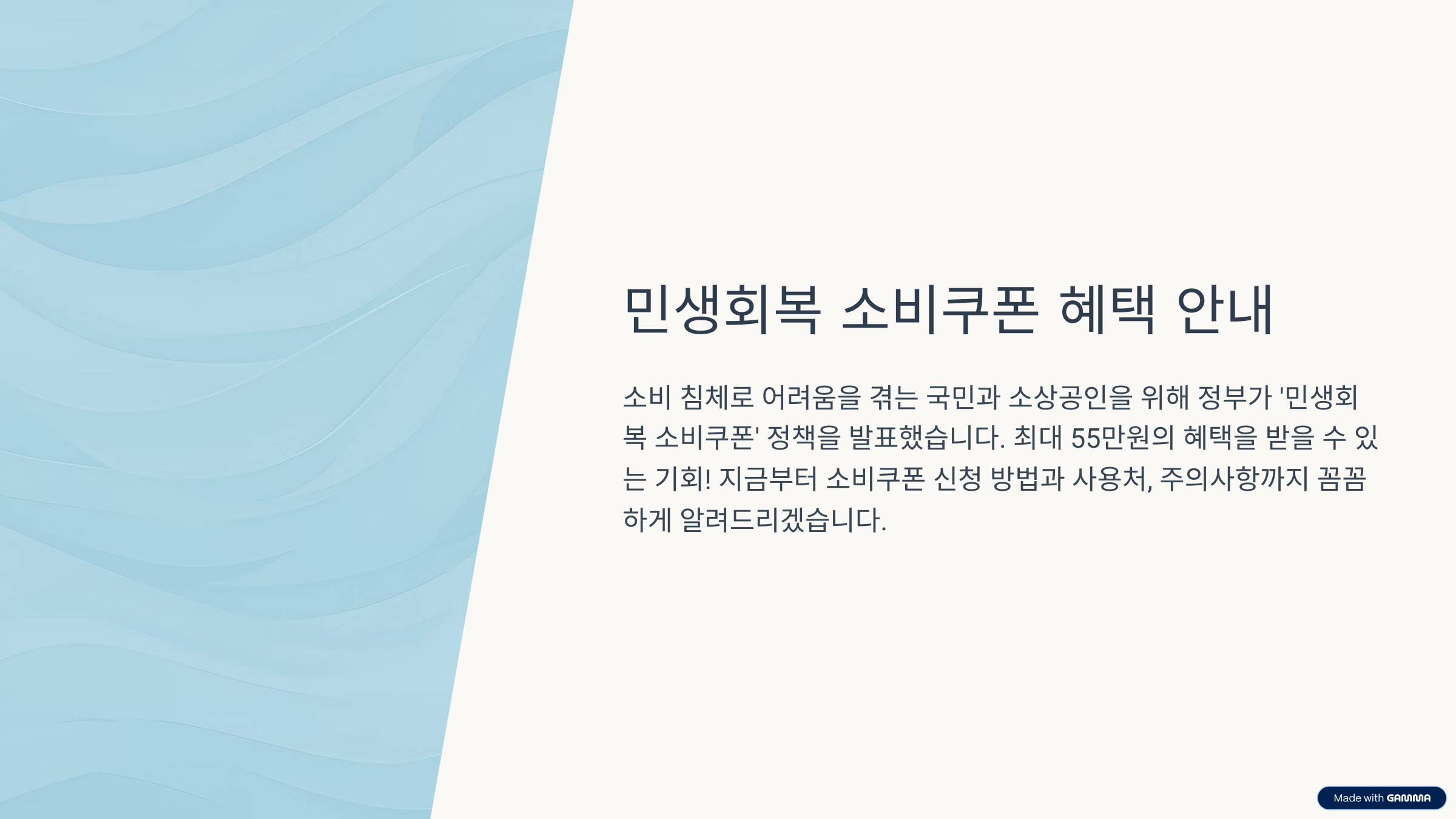 소비 침체로 어려움을 겪는 국민과 소상공인을 위해 정부가 '민생회복 소비쿠폰' 정책을 발표했습니다. 최대 55만원의 혜택을 받을 수 있는 기회!