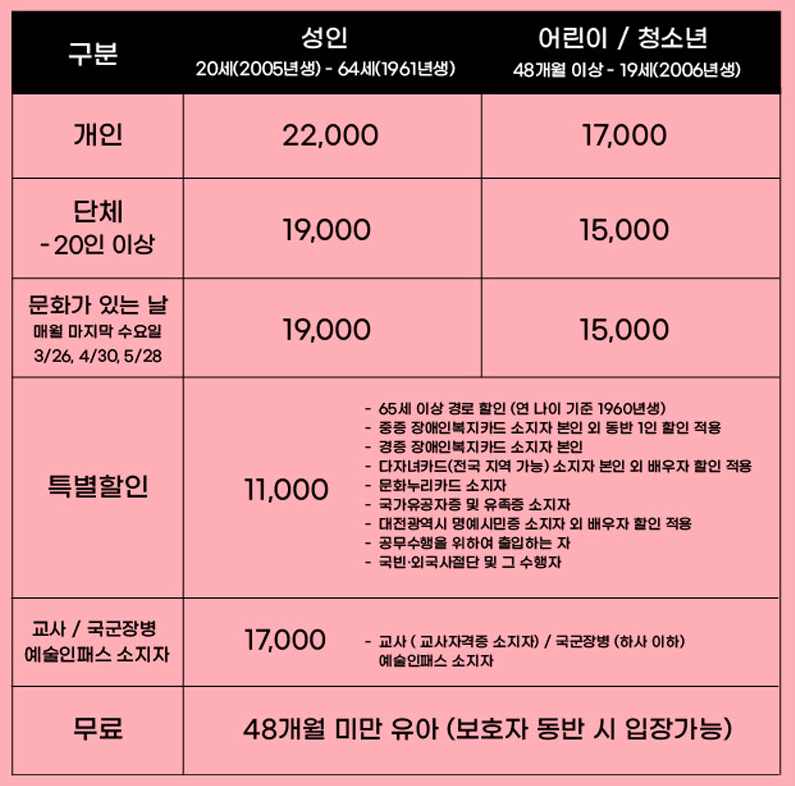 • 사전 예약: 네이버, 카카오, 인터파크, YES24 (2월 5일 오전 9시부터 3월 16일까지)
