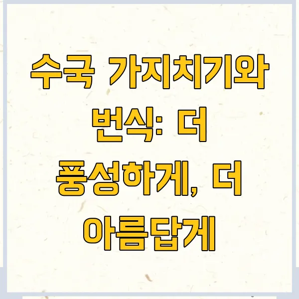 수국은 꺾꽂이로 번식이 잘 됩니다. 봄이나 여름에 건강한 가지를 잘라 꽂으면 뿌리가 내립니다. 꺾꽂이 용토는 펄라이트와 버미큘라이트를 섞어 사용하고, 습도를 유지해 주는 것이 중요합니다. 꺾꽂이 후 2~3주가 지나면 뿌리가 내리기 시작합니다.