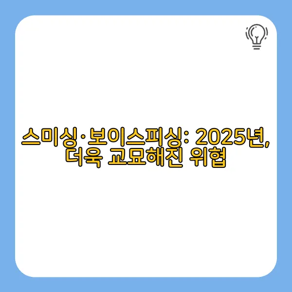 스미싱과 보이스피싱, 뉴스에서만 보던 남의 일이라고 생각하셨나요? 천만에요! 바로 우리 곁에 도사리고 있는 현실적인 위협입니다. 특히 2025년 현재, AI 기술의 발전은 이러한 사이버 범죄를 더욱 정교하고 교묘하게 만들었습니다. 이제는 단순한 사칭을 넘어, 딥페이크 기술을 활용한 음성 조작까지 등장했으니, 정말 간담이 서늘해지는 상황입니다. 스미싱과 보이스피싱, 정확히 알고 적극적으로 대비해야만 안전을 지킬 수 있습니다.