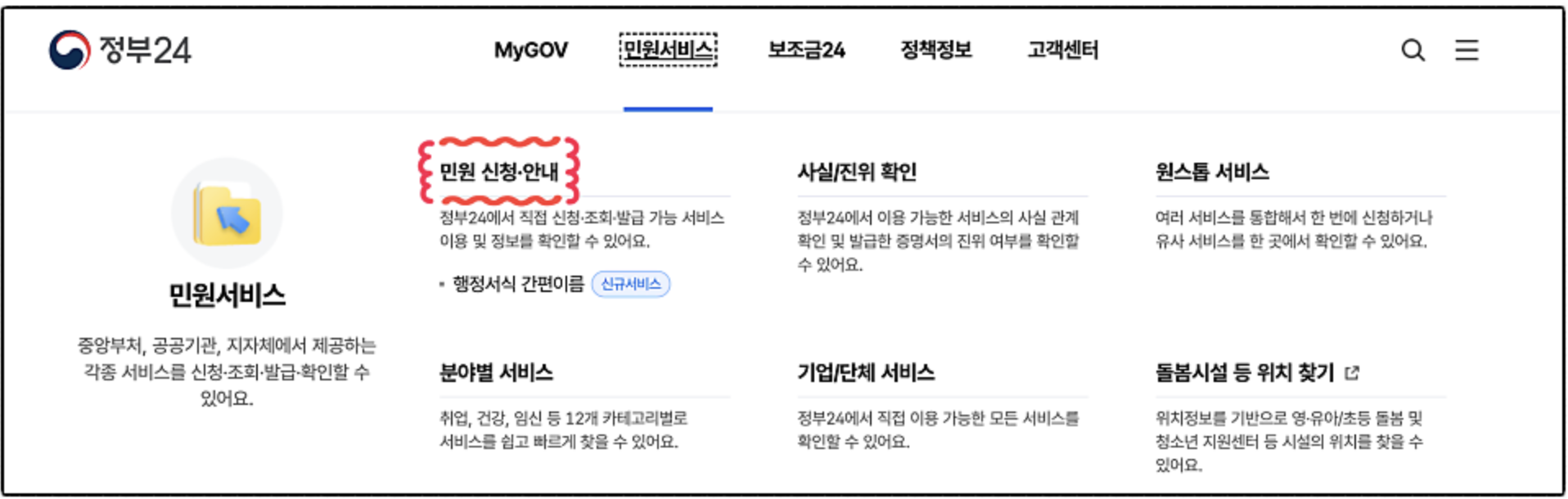 1. 포털사이트에 정부24를 검색해서 접속하시거나 아래 링크를 통해 바로 접속 가능합니다.