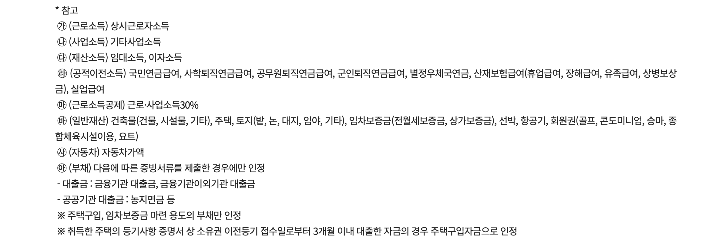• (청년가구) 청년 + 배우자 + 직셰비속 + 동일 주소지에 거주하는 그 외 '민법'상 가족